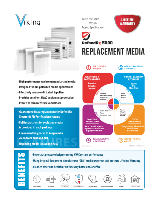 Filtro limpiador de aire de medios polarizados de baja presión DefendRx de 1" de tamaño estándar y 3 almohadillas de repuesto